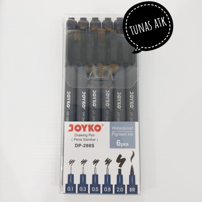 Drawing Pen Joyko® DP-298S adalah pilihan sempurna untuk Anda yang menginginkan drawing pen serbaguna dalam satu set pembelian. Dilengkapi dengan berbagai ukuran ujung pena (0,1 mm, 0,3 mm, 0,5 mm, dan 0,8 mm) serta brush pen berukuran 2.0 mm, produk ini sangat cocok untuk ilustrasi dan brush lettering. Tinta pigmen yang tahan air dan ujung pena yang dirancang agar tahan lama menjadikan Joyko® DP-298S dapat diandalkan untuk berbagai keperluan seni dan tulis-menulis. Dengan fitur lengkap dan kualitas yang baik, produk ini akan memenuhi kebutuhan para seniman dan penulis dengan baik.