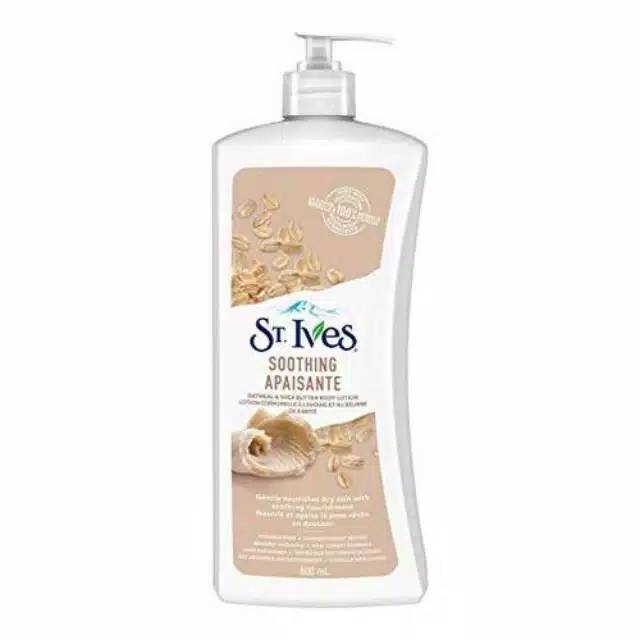 St Ives Soothing Oatmeal & Shea Butter Body Lotion dibuat dengan 100% natural moisturizers. Dibuat dengan beberapa bahan pilihan, termasuk seha butter, oatmeal dan soybeans. Kandungan shea butter sebagai emolian yang hebat, dikenal dengan sifatnya yang menyejukkan.