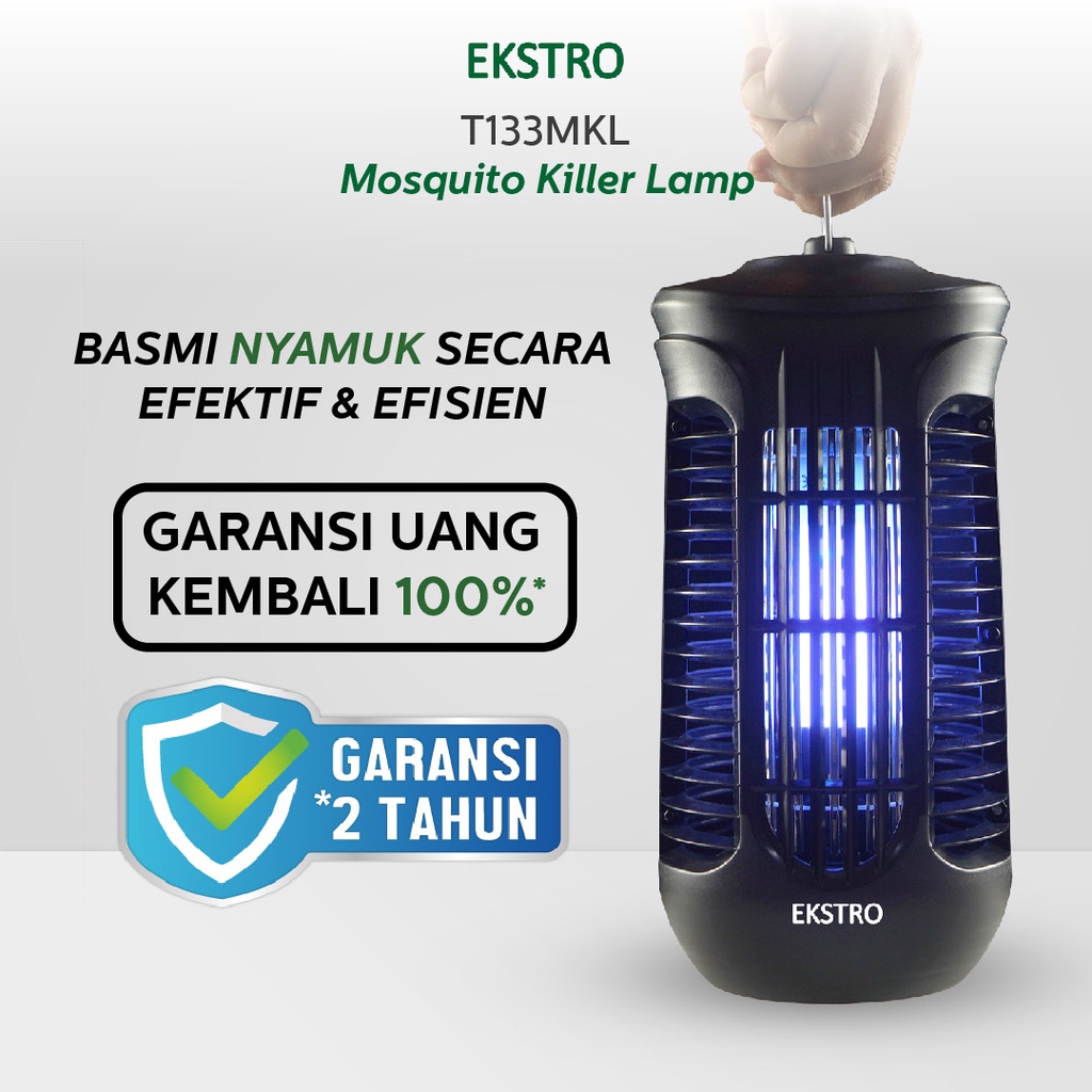 Ekstro T133MKL adalah penangkap nyamuk yang efektif, aman, dan tanpa kimia. Alat ini menarik nyamuk dengan 3 cara yang berbeda, yaitu sinar UV 360 derajat, grill vertikal dan horizontal, serta penyengat listrik self cleaning. Pengoperasiannya sangat mudah hanya dengan 1 tombol on/off, dan alat ini cocok digunakan di kamar tidur karena suaranya yang tenang. Dengan jangkauan area hingga 75m2, Ekstro T133MKL dapat memberikan perlindungan maksimal dari nyamuk. Produk ini juga dilengkapi dengan garansi 2 tahun dan memiliki service center di Jakarta dan Surabaya.