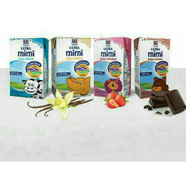 Ultra Mimi produk PT Ultrajaya Milk Industri ini memiliki komitmen mendukung penuh pertumbuhan anak, memperkuat tulang dan gigi, membantu regenerasi sel, dan meningkatkan daya tahan tubuh. Susu UHT mini ini memiliki kandungan berbagai macam vitamin,mineral, dan juga kalsium. Nutrisinya cukup lengkap dan seimbang bagi anak dalam masa pertumbuhan.