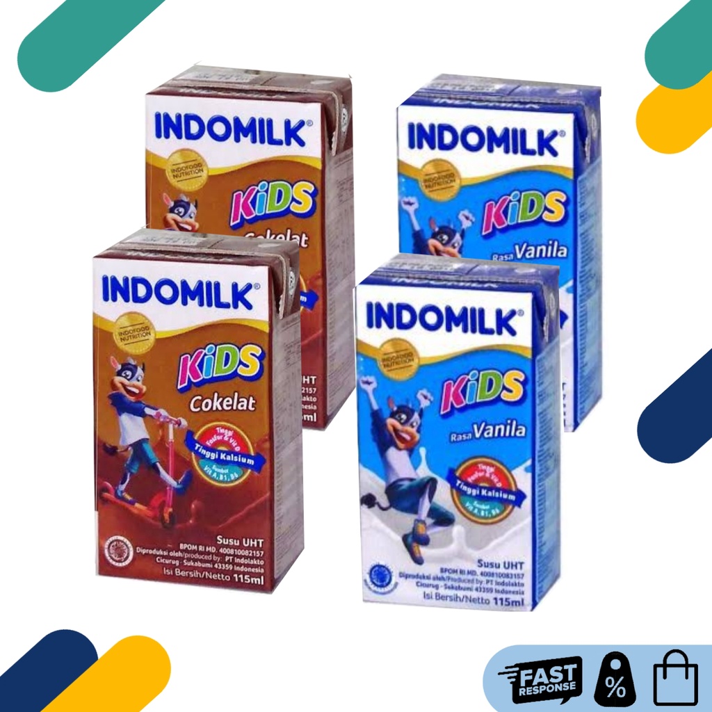 Susu UHT mini produksi PT Indolakto ini memiliki isi 115 ml per kotak. Terdapat beberapa varian rasa, yakni full cream, vanila, cokelat, dan stroberi. Susu Indomilk UHT Kids ini sangat mudah dijumpai di berbagai minimarket maupun supermarket. Mommies juga dapat membelinya secara online di marketplace favorit.