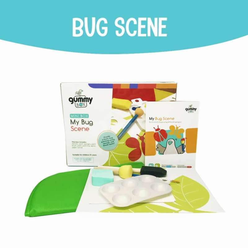 Bug Scene dari GummyBox adalah cara yang kreatif dan edukatif untuk mengajak anak-anak berusia 4 tahun ke atas untuk belajar melukis serangga seperti ulat, laba-laba, dan kumbang kecil. Dalam sekotak peralatan lukis ini, Anda akan menemukan enam stencil kertas, tiga warna cat yang berbeda, serta empat kuas dan spons.