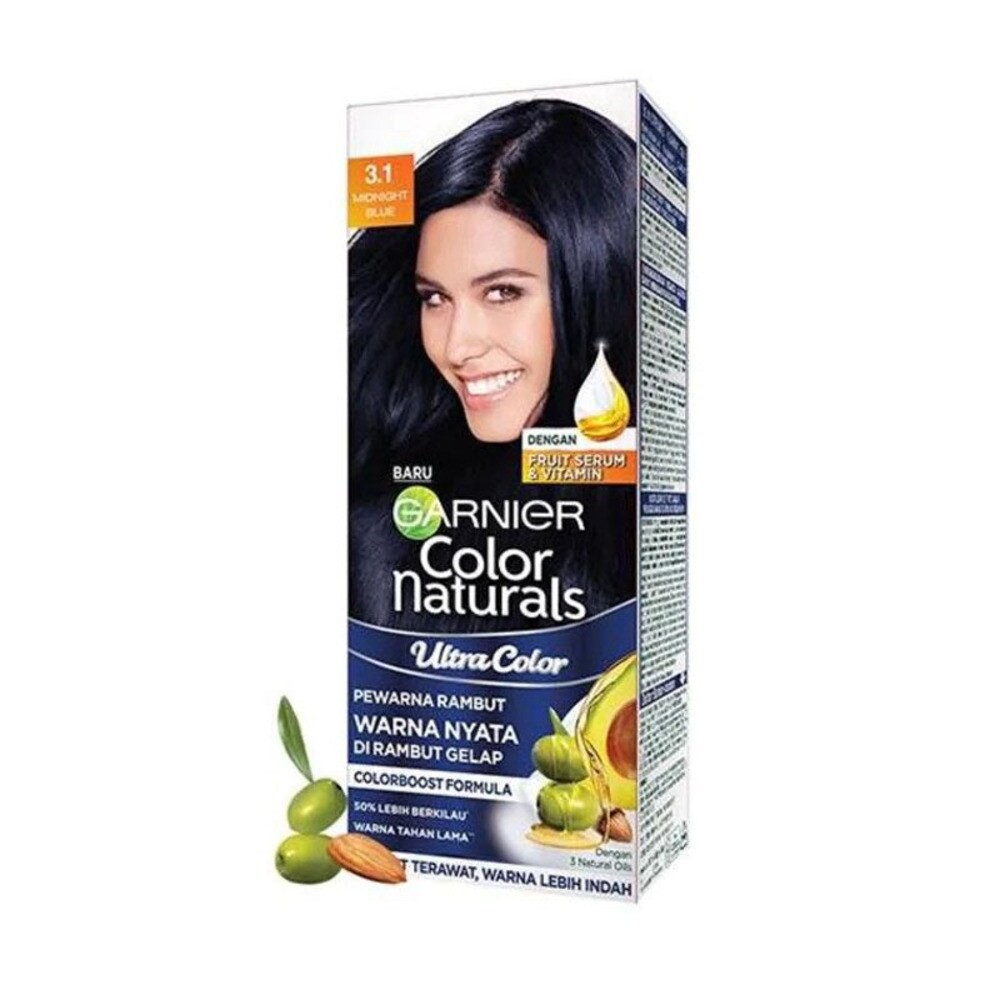 Garnier Color Naturals Ultra Color 3.1 Midnight Blue merupakan inovasi terbaru dalam pewarna rambut permanen dari Garnier. Pewarna rambut ini tidak mengandung ammonia, dengan wangi yang lembut. Diperkaya dengan 3 natural oils seperti Avocado, Olive, dan Almond, serta conditioner dengan fruit vitamins & oils, produk ini memberikan nutrisi pada rambut sehingga warna rambutmu lebih indah, berkilau, dan tetap terawat.