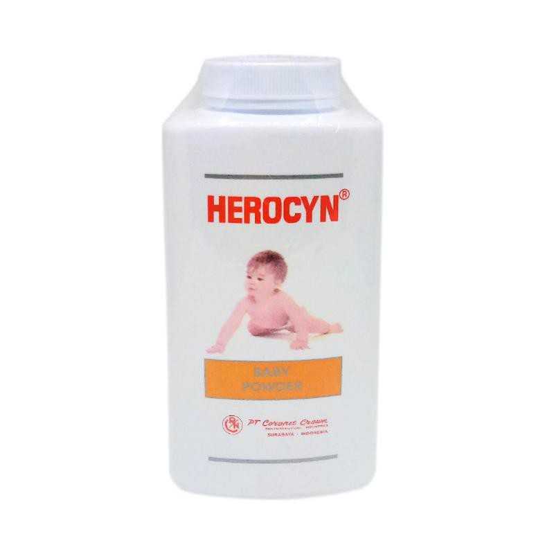 HEROCYN BABY POWDER adalah bedak bayi berukuran 200GR yang lembut dan sangat ideal untuk kulit bayi yang teramat halus dan lembut. Bedak ini digunakan untuk memelihara kulit agar tetap sehat, segar, halus, dan harum dengan komposisi Talc, zinc oxide, zinc stearate, dan parfum. Taburkan bedak bayi Herocyn pada lipatan-lipatan kulit serta seluruh tubuh bayi setelah mandi.