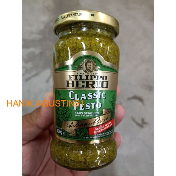 Nikmati cita rasa lezat saus bumbu pasta Filippo Berio Classic Pesto yang dihasilkan dari bahan rempah-rempah berkualitas, terutama basil Italia. Saus pasta ini memberikan sentuhan klasik Genovese pada hidangan spageti Anda. Dengan berat bersih 190gr, produk ini berasal dari Italia dan tidak mengandung organisme hasil rekayasa genetik (GMO). Pastikan untuk mengocok saus pesto sebelum digunakan dan setelah dibuka, simpan di dalam kulkas dan habiskan dalam waktu dua minggu.