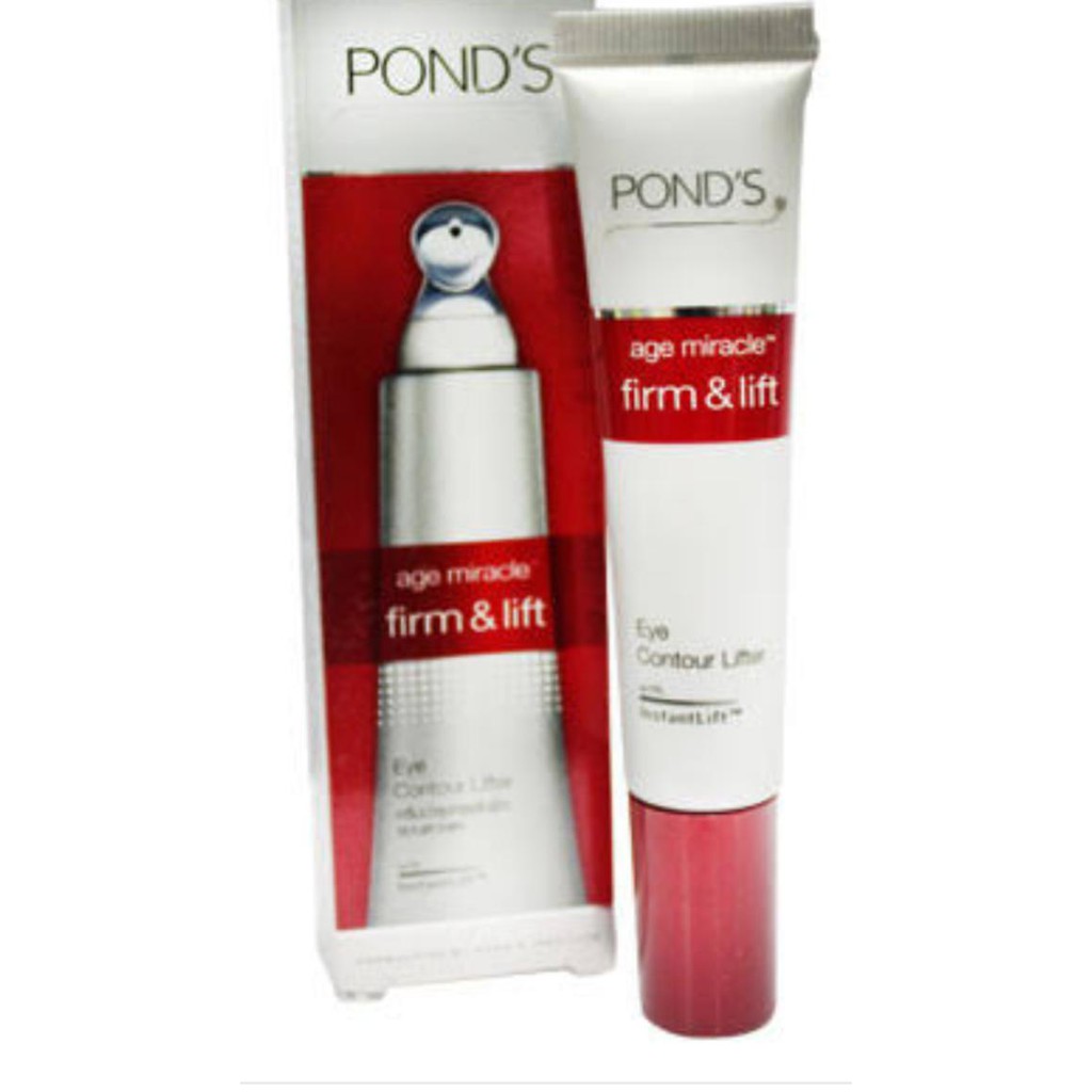 Pond’s Age Miracle Firm & Lift Eye Contour Lifter. Produk yang satu ini dipersembahkan untuk menghiangkan kerut dan garis halus di sekitar mata. Dengan kandungan Potent Lift Complex, produk ini bisa memberikan rasa kencang pada kulit. Ada juga Superior Sun Protection yang bisa memberikan perlindungan SPF 30 PA +++ dari bahaya penuaan akibat sinar matahari. Skincare yang satu ini juga dilengkapi Cooling Effect yang memberikan sensasi menyegarkan pada kulit. Produk ini dilengkapi dengan aplikator yang dirancang khusus untuk area sekitar mata.