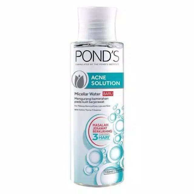 Skincare Pond’s pertama rekomendasi dari kami adalah Pond’s Acne Solution Micellar Water. Produk yang satu ini bisa jadi andalan Anda saat membersihkan wajah dari sisa makeup maupun debu dan kotoran. Micellar water ini tiap usapannya mengandung 1 juta micelles dan teknologi mutakhir Thymo-T Essence. Berkat teknologi tersebut, kulit jadi lebih terlindung dari bakteri penyebab jerawat. Dengan satu usapan saja, makeup yang susah hilang bisa terangkat. Produk ini lembut di kulit dan bisa membuat kulit wajah cerah.