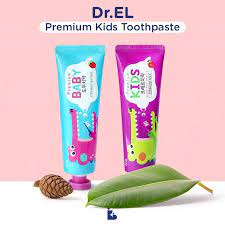 Pasta gigi bayi Dr. EL Baby terbagi menjadi dua jenis. Baby yang merupakan pasta gigi untuk usia 0 hingga 12 tahun dan kids untuk anak usia 3 hingga 12 tahun. Pasta gigi ini mengandung komponen yang diturunkan secara alami dengan Rosemary organik bersertifikat, Chamomile, Aloe Vera, Eucalyptus, Green Tea dan Sage.