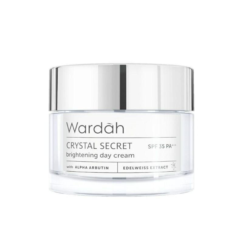 Wardah Crystal Secret Brightening Day Cream adalah krim wajah dengan Crystal White Active untuk melindungi kulit dari sinar UV dan mencerahkan kulit, memberikan tampilan kulit yang lebih cerah dan bercahaya. Dilengkapi dengan UV Protection untuk melindungi dari sinar UVA dan UVB, serta antioksidan kompleks yang membantu melindungi kulit dari radikal bebas dan menghambat proses pembentukan melanin berlebih. Kandungan Crystal White membantu menghambat produksi melanin berlebih yang menyebabkan kulit gelap, sementara Vitamin B3 membantu mengurangi noda hitam di wajah. Formula ini juga memiliki agen pelembab dan bahan menenangkan untuk menjaga keseimbangan kulit.