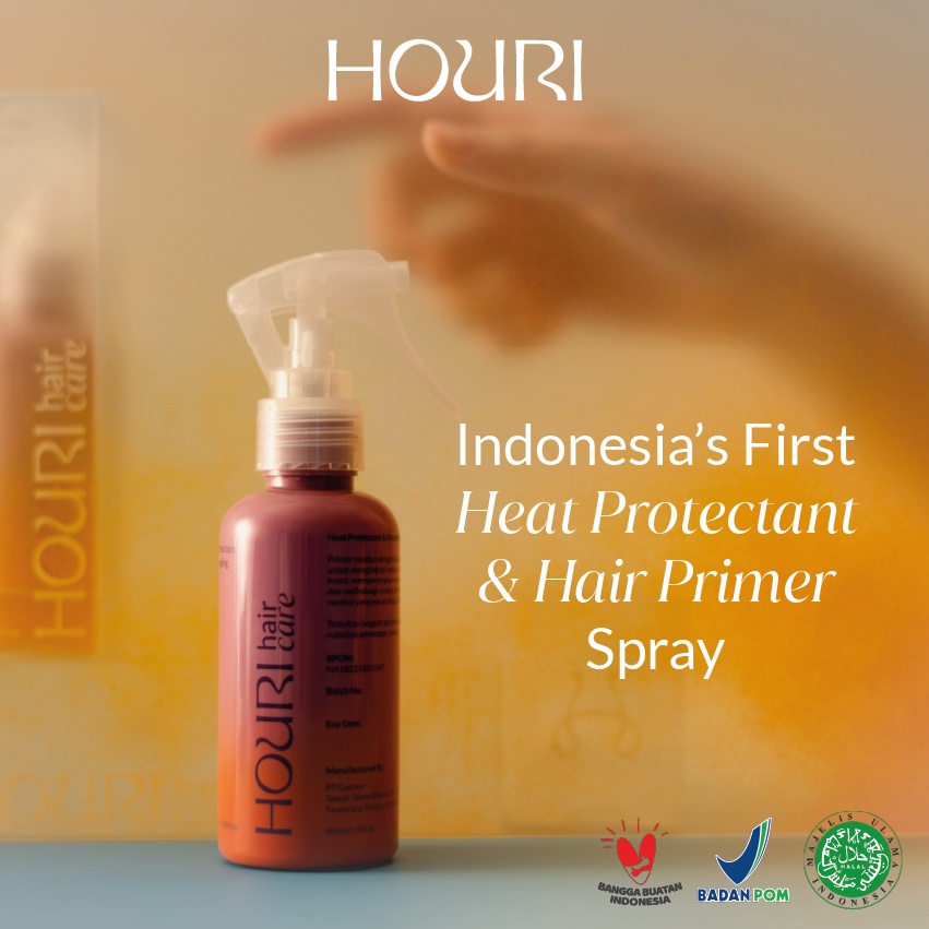 HOURI Haircare Heat Protectant & Detangling Primer adalah primer rambut all-in-one yang mengurai dan melindungi rambut dari panas. Diformulasikan dengan Argan Oil dan Sunflower Seed Oil, produk ini menghidrasi rambut, mencegah rambut kusut, dan mempersingkat waktu pengeringan. Primer ini melindungi rambut dari alat penata rambut panas hingga suhu 230°C, menguatkan, dan menghaluskan rambut. Aman untuk semua jenis rambut, rambut yang diwarnai, dan dirawat oleh keratin, serta aman untuk ibu hamil. Produk ini memiliki sertifikasi BPOM & HALAL, serta ramah lingkungan (Vegan & Cruelty Free) dan bebas dari sulfat, paraben, ftalat, dan bahan pengawet.