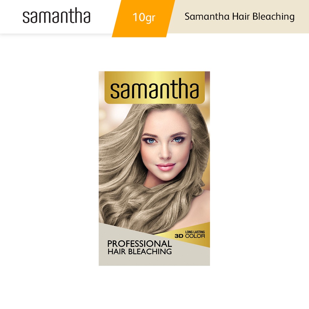 Samantha Professional Hair Bleaching adalah produk yang diformulasikan khusus untuk memudarkan warna alami rambut sebelum diwarnai dengan Samantha dan memberikan hasil yang maksimal untuk warna rambut pilihan Anda. Caranya sangat mudah, cukup campurkan bubuk bleaching dengan krim developer, aplikasikan ke seluruh rambut, biarkan selama 35 menit, bilas dengan air hangat, dan keringkan rambut. Produk ini tidak hanya mengangkat pigmen asli rambut secara efektif untuk pewarnaan yang tahan lama, tetapi juga menjaga kelembutan dan kilau rambut. Dengan Samantha Hair Bleaching, Anda bisa melakukan proses bleaching rambut dalam waktu 35 menit saja.