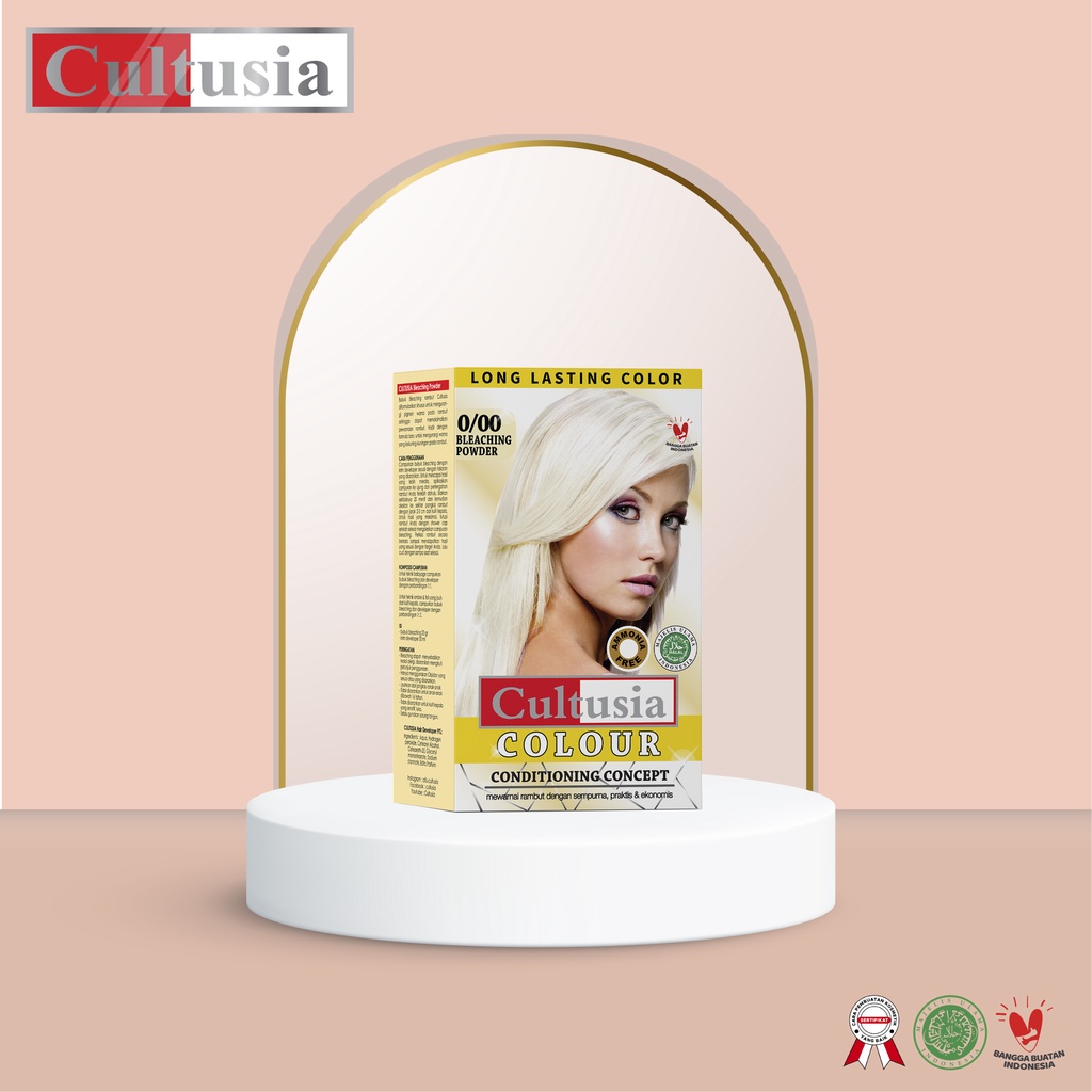 Cultusia Bleaching Powder memberikan solusi untuk mengurangi warna kekuningan pada rambut dan meningkatkan hasil pewarnaan rambut.