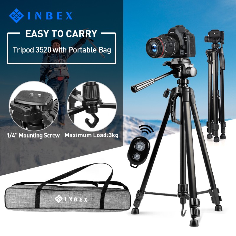 INBEX TF-3520 Tripod Kamera dirancang dengan sistem 3-way panhead dan bagian kaki yang memiliki 3 bagian berbahan karet. Tripod juga mudah diatur sudut horizontal serta ketinggiannya untuk kebutuhan pengambilan gambar dari posisi manapun.