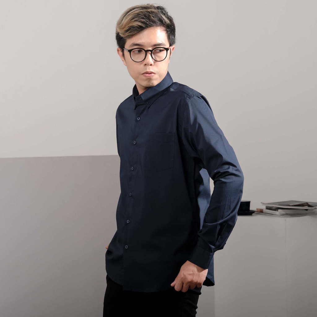 Bahan tersebut juga tidak mudah kusut. Untuk detail kemeja terdapat kancing di sepanjang plaket, terdapat saku di bagian kiri depan, dan kancing di ujung lengan dan kerah. Cocok digunakan untuk acara formal maupun non formal sekalipun.