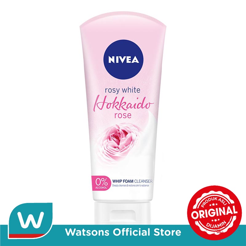 NIVEA Hokkaido Rose Whip Facial Foam merupakan sabun wajah yang dapat membersihkan dan mencerahkan kulit dengan efek antioksidan. Dengan tekstur lembut yang creamy, sabun ini menghasilkan busa yang melimpah saat digunakan. Diperkaya dengan Alba Rose Serum dari Hokkaido Jepang, hyaluron serum, dan vitamin C, produk ini mampu mengangkat kotoran dan sisa makeup secara menyeluruh.
