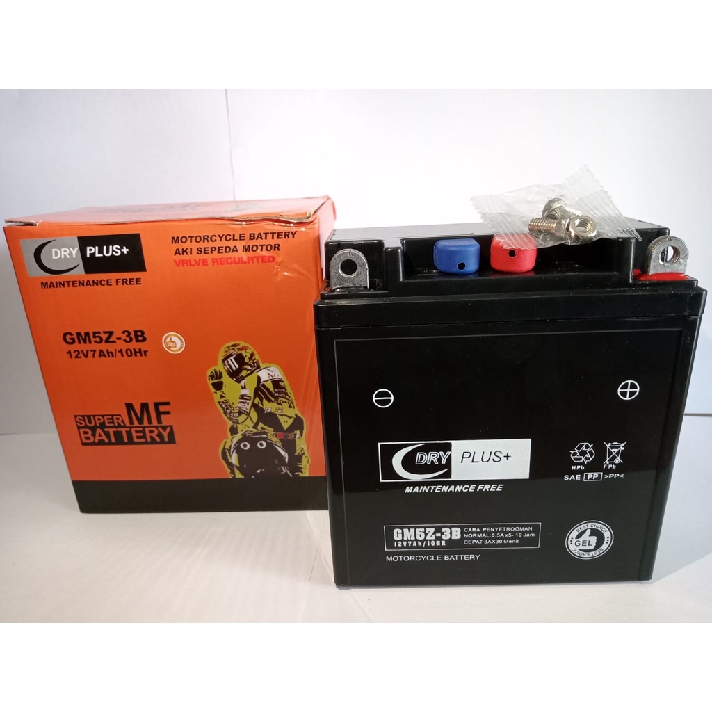 Aki Dry Plus+ GM5Z-3B merupakan aki motor yang accu zuurnya terkunci dengan baik, sehingga tidak bocor. Kelebihannya adalah harganya relatif terjangkau dengan kualitas setara aki orisinal. Aki ini memiliki daya starter tinggi, sehingga Anda tidak perlu khawatir akan mogok. Namun, kelemahannya adalah masa garansinya yang relatif pendek, kurang dari 6 bulan.