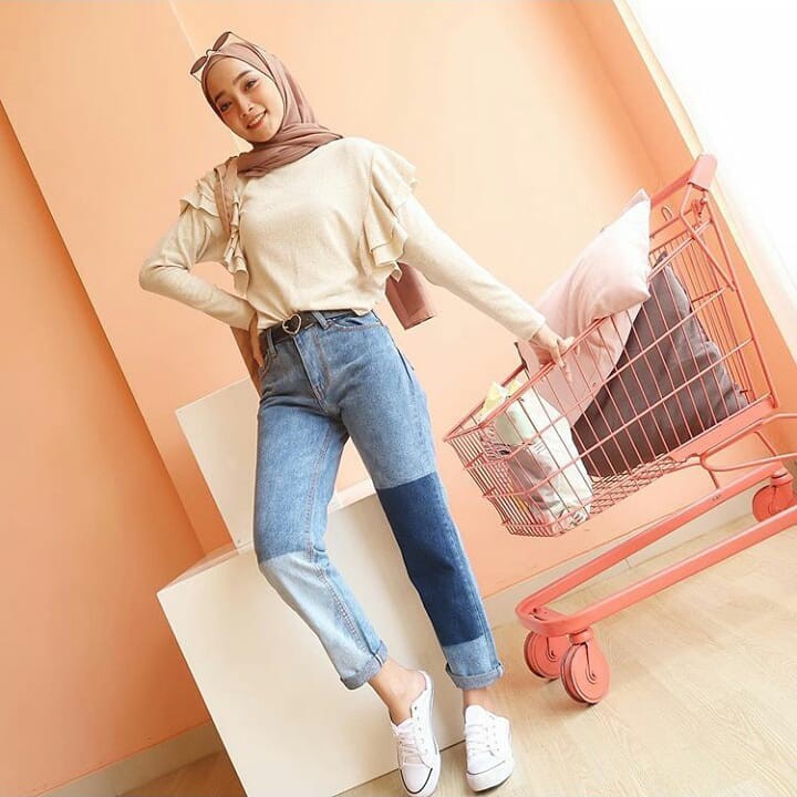 Siapa bilang wanita muslimah tidak bisa tampil dengan celana jeans? Kini model celana jeans sangat beragam dan tidak ketat sehingga lekuk tubuhmu tidak akan terlihat. Kamu bisa tetap tampil modis tanpa melanggar syariat.