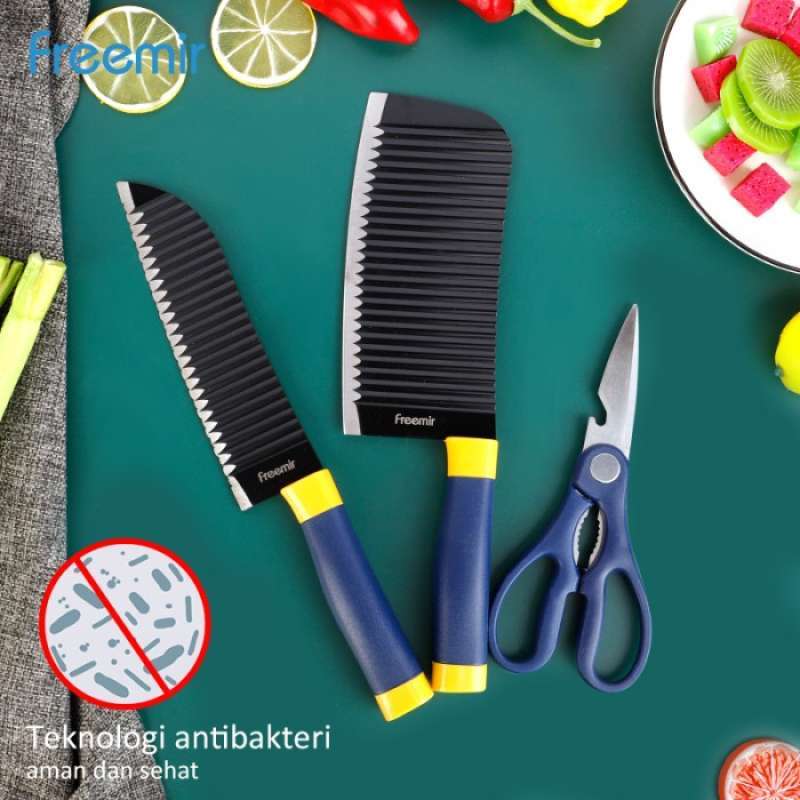 freemir Knife Set 3 in 1 merupakan solusi lengkap untuk kebutuhan dapur Anda. Dengan desain minimalis dan modern, set ini terdiri dari pisau daging, pisau dapur, dan gunting dapur. Pisau-pisau ini terbuat dari stainless steel 30CR13 yang tahan lama, kuat, dan anti karat, menjadikannya aman untuk pemakaian jangka panjang. Kelebihan lainnya, pisau ini tidak lengket saat digunakan untuk memotong, memberikan pengalaman memasak yang lebih efisien. Dapatkan perlengkapan dapur berkualitas tinggi dengan freemir Knife Set 3 in 1 untuk memenuhi kebutuhan gaya hidup Anda.