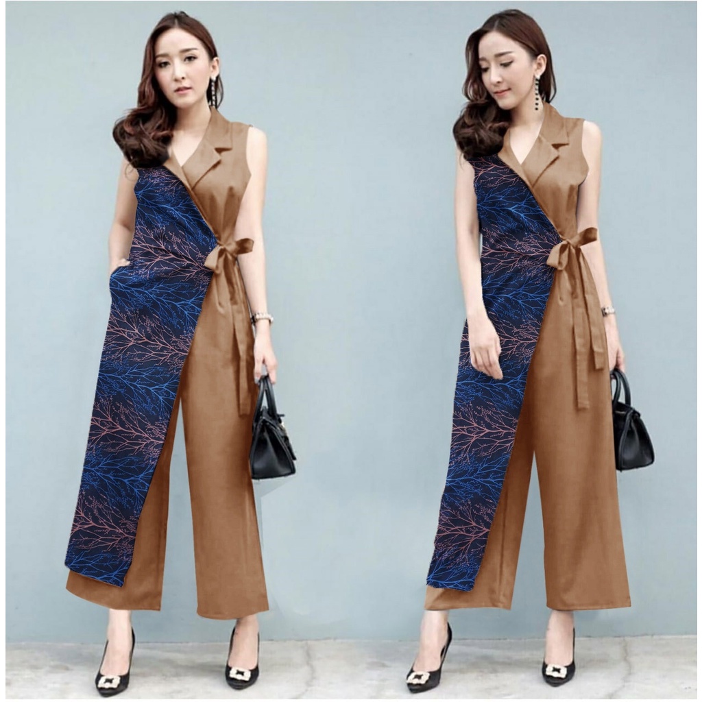 Jumpsuit ini cocok untuk dikenakan di segala acara. Kamu cukup menambahkan blazer polos agar tampilan kamu semakin formal. Motif batiknya sendiri pun bervariasi, kamu bisa mencocokkan sesuai selera kamu.