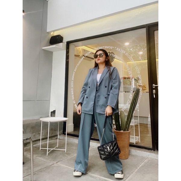 Rekomendasi berikutnya masih seputar blazer, kali ini ada blazer set dengan celana yang senada. Blazer set ini bisa jadi pilihan outfit simpel dan last-minute karena kamu tidak perlu pusing lagi harus membeli bawahan yang senada atau cocok.