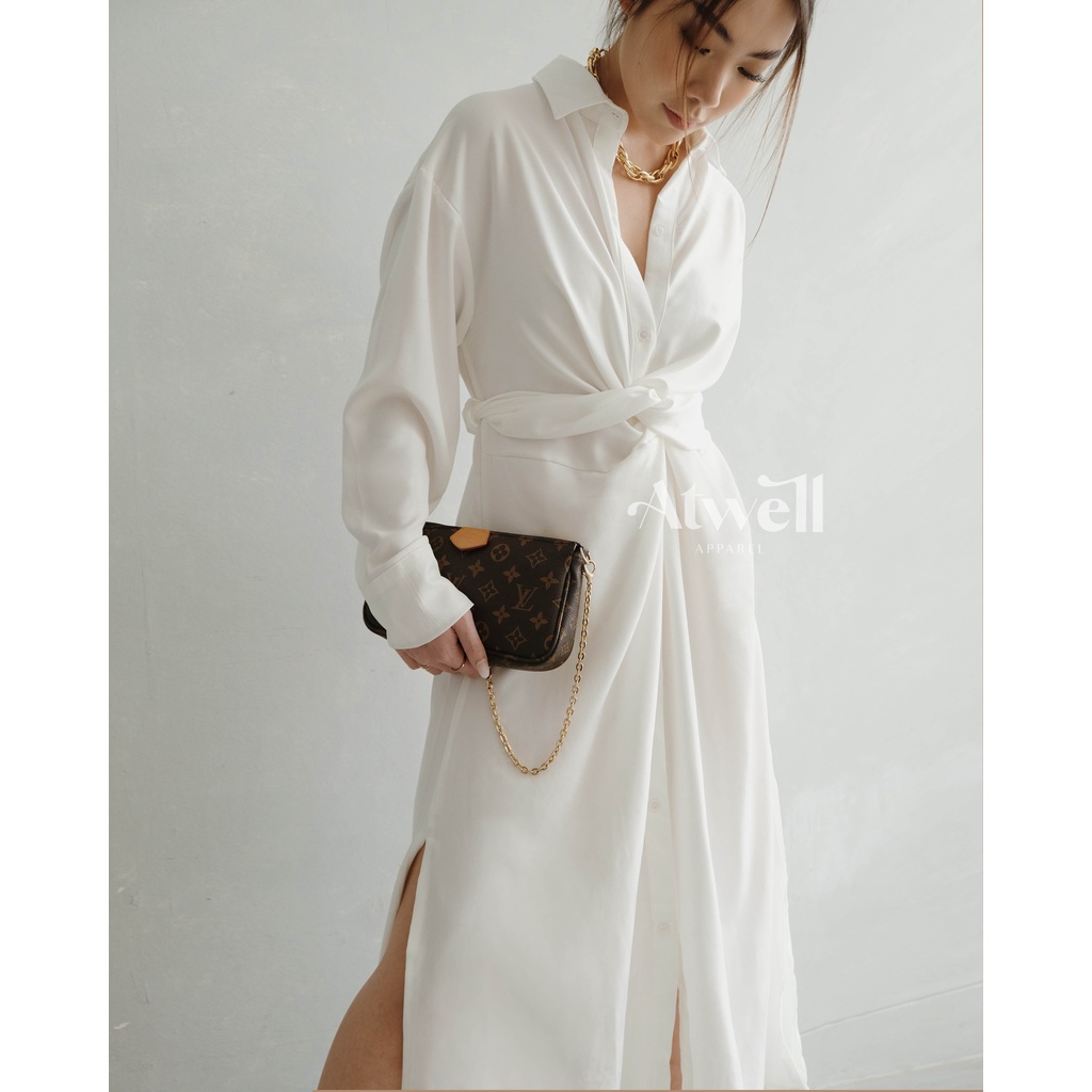 Shirt dress merupakan model baju panjang yang biasanya dibuat dengan bahan katun, linen, atau rayon, sehingga membuat tampilan dress tidak terlalu formal dan tidak juga terlalu santai.