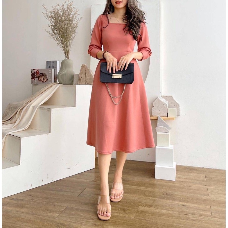 Midi dress berikutnya masih terinspirasi dari model Korean vintage dress dengan cutting mengembang seperti rok. Midi dress ini biasanya terbuat dari bahan wedges, yaitu bahan kain yang sering digunakan untuk membuat baju-baju formal.