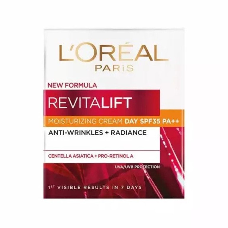 L'oreal Revitalift Day Cream Anti Wrinkle Firming Dermalift Proretino memiliki formula baru yaitu Dermalift yang memiliki performa tinggi ketika dikombinasikan dengan Pro Retinol A. Sehingga produk ini memiliki aksi intensif untuk merawat kekencangan kulit dan anti-kerut secara efektif serta memberikan perlindungan terhadap UVA dan UVB untuk mencegah penuaan dini.