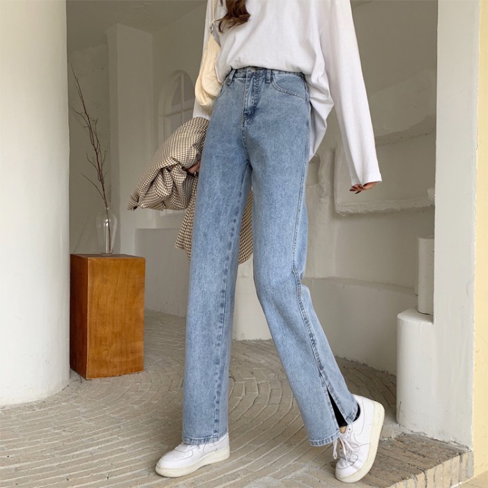Celana jeans kaki lebar ini sudah sempat populer di era 70 hingga 90-an dan pada akhirnya celana ini kembali diminati oleh kaum millenials. Celana jeans model kaki lebar ini memiliki tampilan yang chic dan stylish. Tak hanya itu, jeans ini dilengkapi dengan tampilan high waist sehingga akan memberikan kesan kaki yang jenjang pada si pemakai. Desain wide leg atau kaki lebar pada bagian bawah jeans juga pastinya membuat seseorang lebih leluasa untuk bergerak.