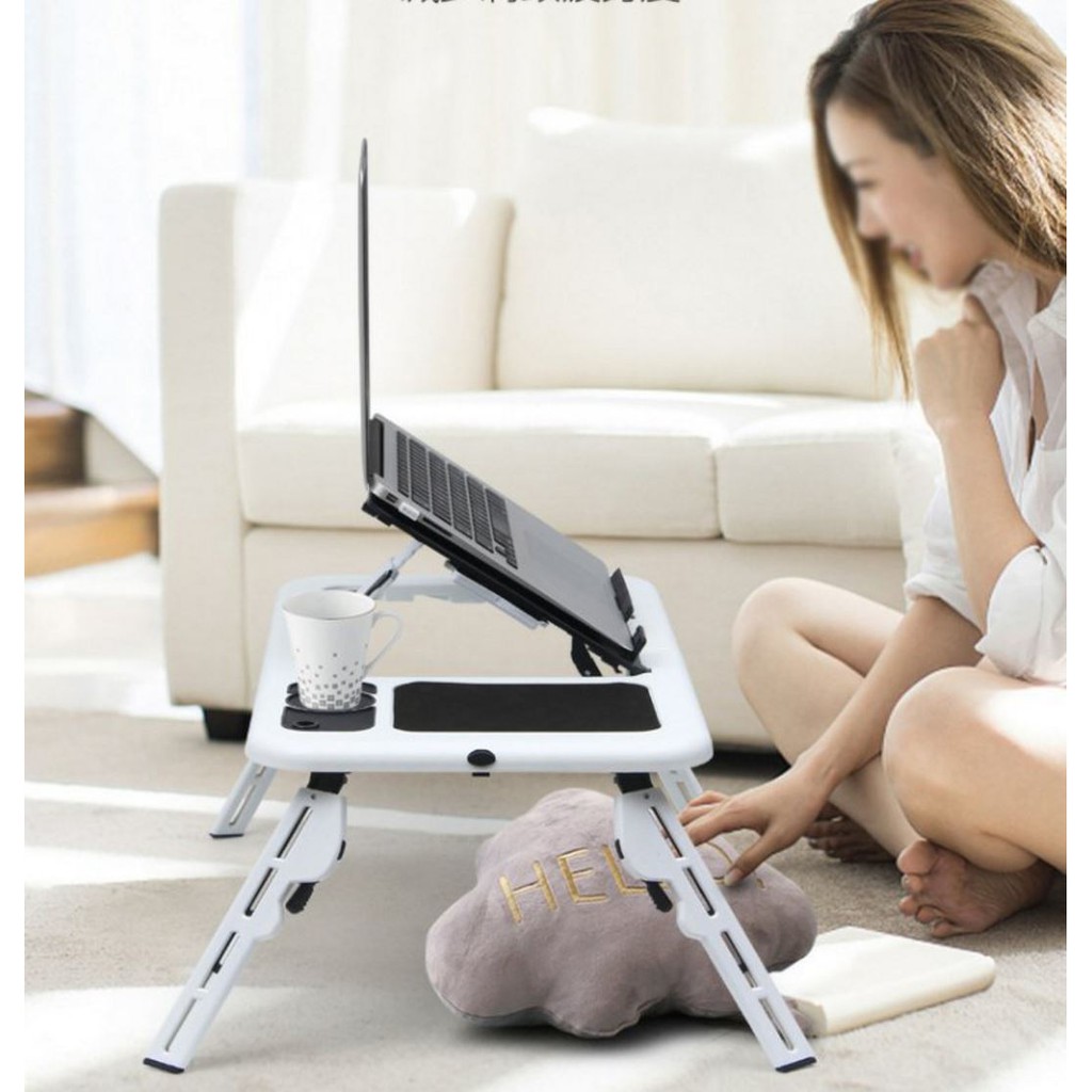Meja laptop bentuk lipat ini juga mudah disimpan dan tidak menghabiskan banyak tempat. Meja ini juga terdapat 2 cooling pad yang membuat laptop tetap dingin selama mengerjakan tugas.