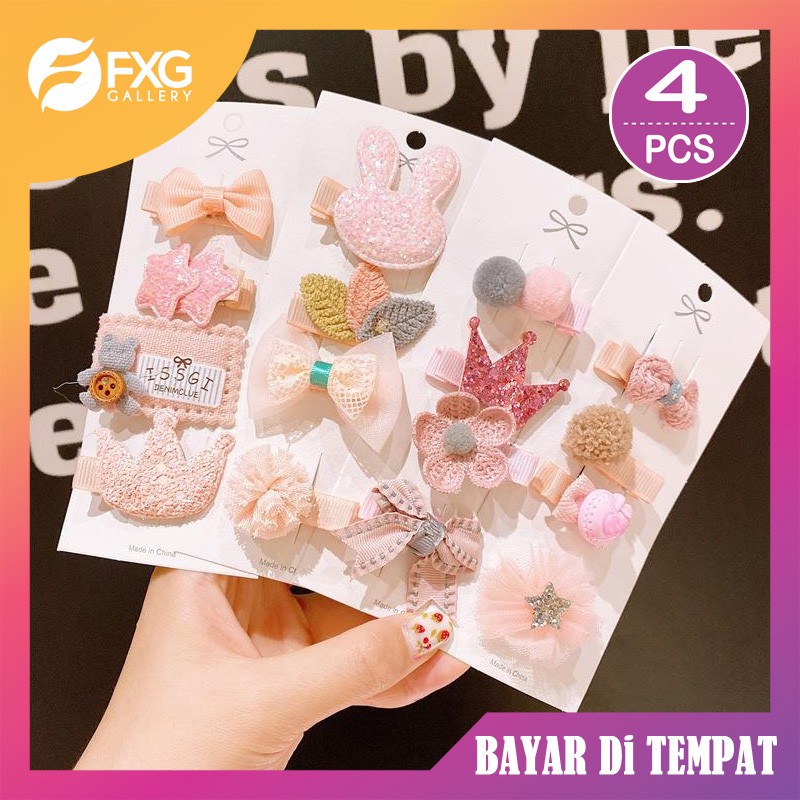 Salah satu aksesoris yang digemari oleh ibu-ibu yang memiliki bayi perempuan adalah jepit rambut. Kamu bisa membeli jepit rambut kekinian ala Korea ini dengan harga yang sangat terjangkau. Dalam satu set, kamu akan mendapatkan 4 buah jepit rambut yang cantik dan lucu.