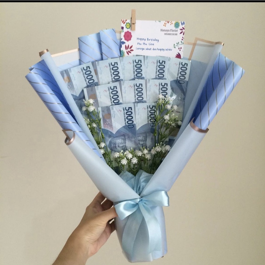Uang tunai juga merupakan salah satu hadiah pernikahan yang biasanya dipilih oleh beberapa orang. Namun, memberi uang tunai berbentuk amplop pastinya terasa kurang srek dan terlalu mainstream, terlebih lagi kamu akan memberikannya kepada sahabat kamu. Untuk itu, kamu bisa memberikan uang tunai melalui buket. Kamu bebas memilih warna dan bentuk buket yang kamu inginkan dan tentunya itu akan mebuatnya terlihat jauh lebih menarik dan berkesan.