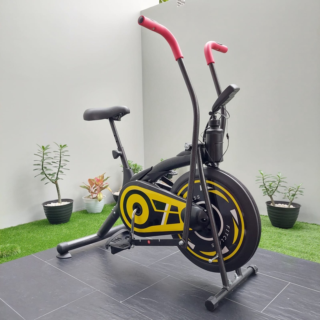 Alat ini dilengkapi dengan berbagai fitur sensor detak jantung, monitor yang fleksibel, pedal anti slip, shock breaker, dan tempat botol minum.