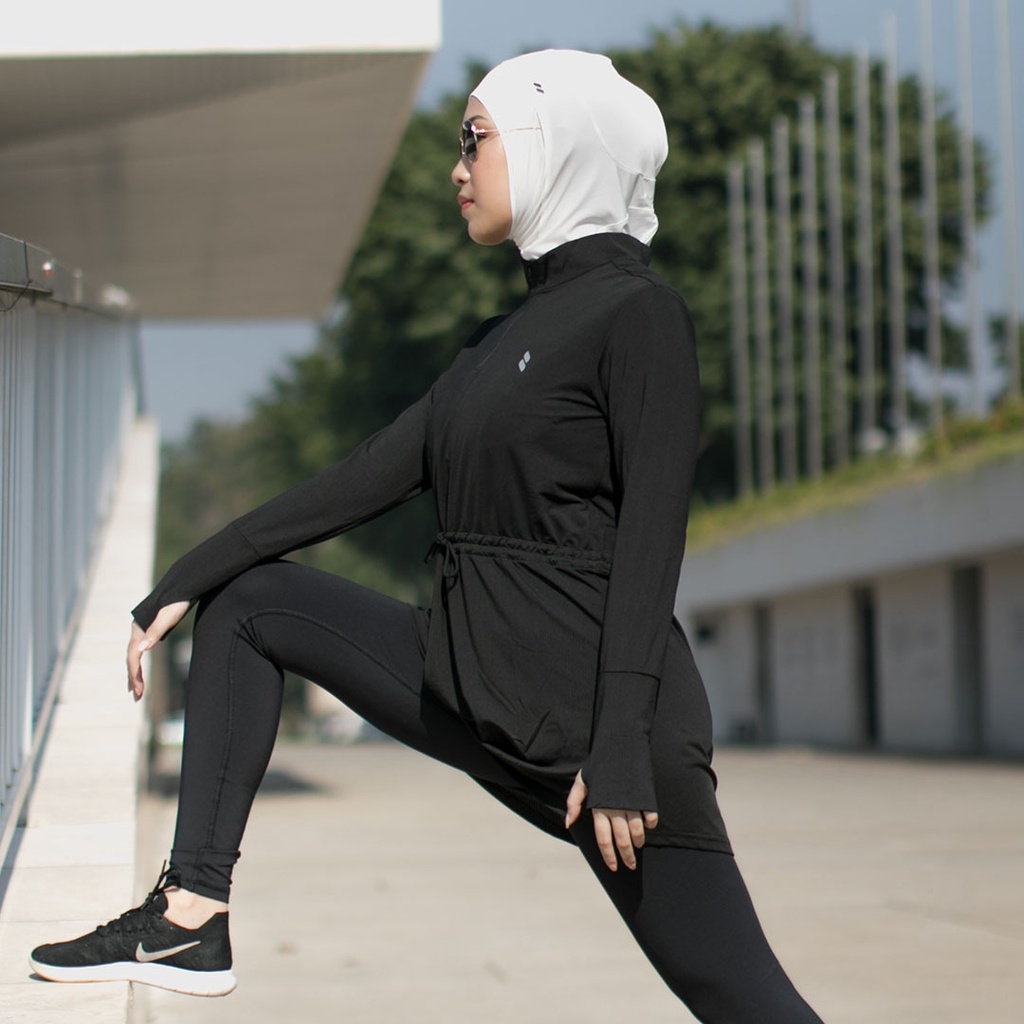 Yucca Modest Atasan Olahraga Muslimah menghadirkan atasan yang dirancang agar dapat digunakan untuk segala aktivitas olahraga. Atasan ini hadir dengan desain A-Line dan tali pinggang untuk menyesuaikan lekuk tubuh kamu.