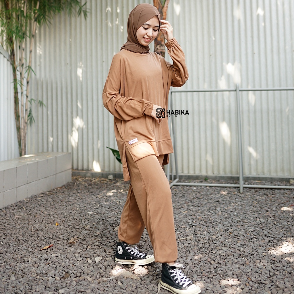 Setelan olahraga yang satu ini cocok banget untuk kamu yang tetap ingin tampil stylish ketika berolahraga. Setelan lengan panjang dan celana ini terbuat dari katun combed 20s yang sudah terkenal nyaman, adem, dan juga menyerap keringat.