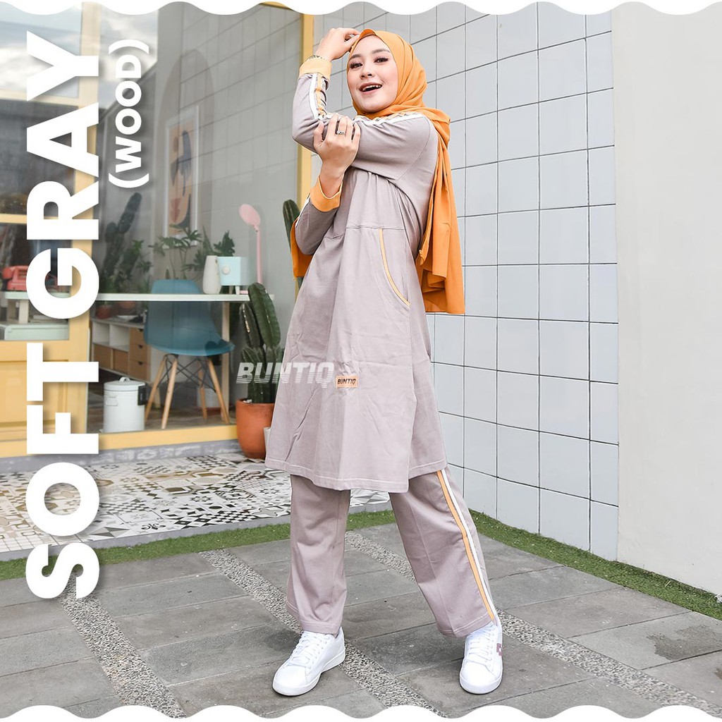 18. Setelan Baju Olahraga Muslimah Lengan Panjang Buntiq