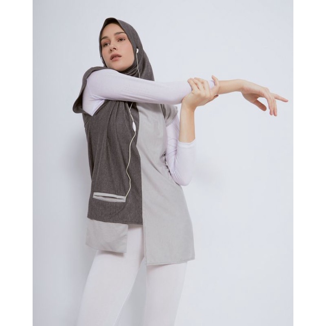 Satu lagi rekomendasi hijab yang bisa jadi pilihan untuk melengkapi outfit olahraga kamu. Rompi hijab tie on sporty ini cocok digunakan untuk menutupi lekuk tubuh kamu agar lebih tertutup terutama ketika sedang mengenakan pakaian olahraga yang ketat.