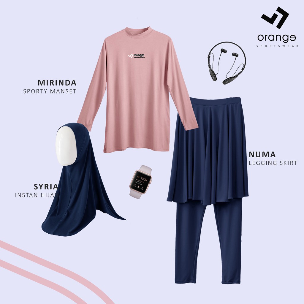 Rekomendasi berikutnya ada satu set baju olahraga yang terdiri dari kerudung, kaos manset, dan legging skirt. Numa sporty set tersedia dalam dua ukuran, yaitu reguler dan big size.