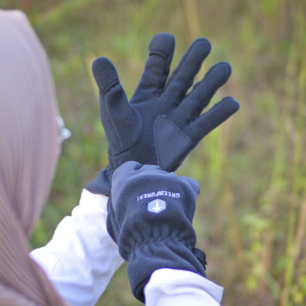 Sarung tangan ini dari Greenforest seri windstoper / polar gloves. Terbuat dari polar tebal merupakan material yang mampu memberikan kehangatan. Pada bagian pergelangan tangan terdapat karet sehingga sarung tangan ini akan tetap pada posisinya saat digunakan. Bagian jari telunjuk dan ibu jari bisa dibuka untuk mempermudah Anda ketika akan menggunakan ponsel.