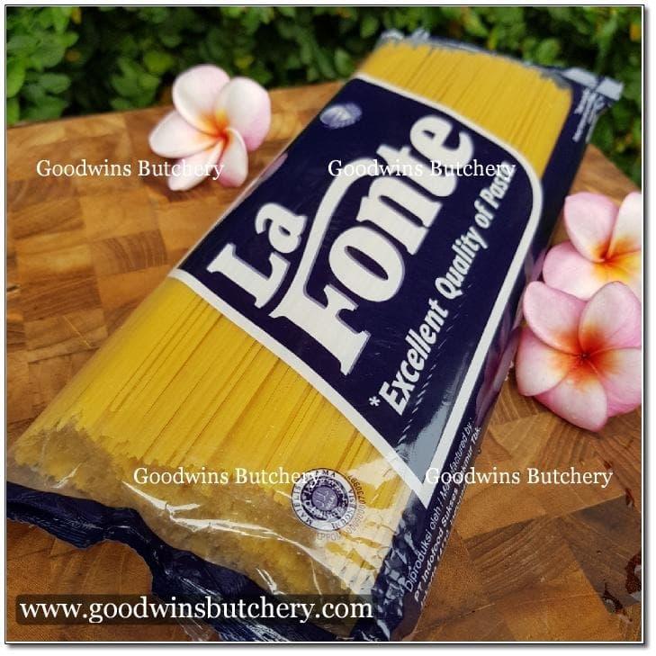 La Fonte Spaghettini adalah pasta berbentuk panjang yang ideal untuk berbagai sajian pasta, mulai dari saus tomat hingga tumisan daging, sayuran, dan ikan. Dibandingkan dengan La Fonte Spaghetti, Spaghettini memiliki diameter lebih kecil, namun tetap menyajikan rasa yang lezat. Diproduksi oleh PT Bogasari Flour Mills, yang merupakan bagian dari Indofood Sukses Makmur Tbk milik Salim Group, La Fonte menawarkan pasta berkualitas tinggi yang dihasilkan dari gandum durum pilihan dengan kandungan protein tinggi dan rendah lemak. Dengan rekomendasi penyajian untuk 4 hingga 8 porsi, La Fonte Spaghettini menjanjikan kemudahan dan kelezatan dalam setiap sajian pasta.