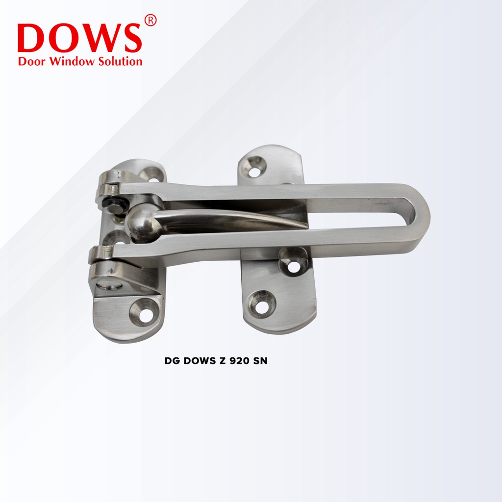 DOOR GUARD / PENGAMAN RANTAI KUNCI PINTU DOWS DG Z 920 SN adalah pengaman pintu dengan material stainless steel, berfungsi melindungi terhadap tamu di luar atau anak kecil. Dows adalah brand produk hardware dan aksesoris pintu dan jendela dari produsen terkemuka di Indonesia, terkenal dengan kualitas produk dan efisiensi harga yang memuaskan pelanggan dari seluruh dunia. Produk Dows diproduksi sesuai standar internasional dan dapat diaplikasikan untuk berbagai jenis pintu dan jendela. Dengan manajemen yang profesional dan tujuan untuk menjadi salah satu hardware yang paling dicari dan disenangi oleh para pelanggan, Dows berkomitmen memberikan solusi terbaik untuk kebutuhan hardware para pelanggan mereka.