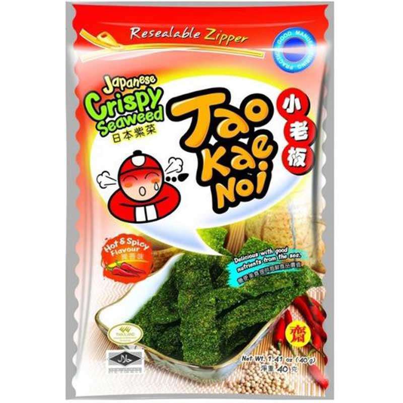Tao Kae Noi Crispy Big Roll Hot and Spicy adalah produk camilan asal Thailand yang terkenal dengan berbagai varian rumput laut berbagai rasa sebagai camilan. Perusahaan ini didirikan di Thailand pada tahun 2004 oleh Itthipat Peeradechapan. Produk-produk Tao Kae Noi, termasuk varian Hot and Spicy, Classic Flavour (Green), dan Grilled Squid (Yellow), semuanya telah mendapatkan sertifikasi HALAL dari MUI (Majelis Ulama Indonesia).