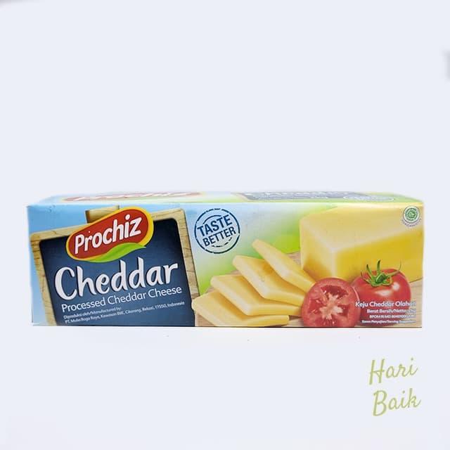 KEJU PROCHIZ CHEDDAR adalah varian keju dengan tekstur padat dan lembut, mudah diparut, dan cocok sebagai topping untuk roti manis, pastry, atau donat. Terbuat dari keju cheddar alami dan bahan-bahan berkualitas lainnya, Prochiz Cheddar tidak hangus dan tidak rontok apabila dipanggang, serta tidak menggumpal. Keju ini dapat diolah dalam berbagai bentuk seperti diparut, dipotong dadu, atau dipotong persegi panjang seperti stik, sehingga cocok digunakan sebagai filling atau isian, topping, dan bahan masakan. Bahan baku Keju PROCHIZ Cheddar meliputi Cheddar Cheese, Water, Thickener Acid Treated Starch, Vegetable Oil, Emulsifiers (Disodium Phosphate, Trisodium Citrate, Sodium Polyphosphate), Salt, Acidity Regulator Lactic Acid, Natural Cheese Flavour, Preservatives (Potassium Sorbate, Nisin), Non Fat Milk Solids, dan Food Color Annato CI 75120.