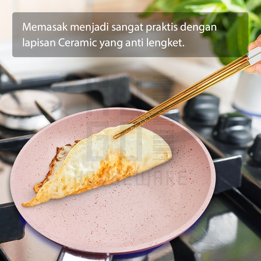 Wajan teflon ini bisa menjadi pilihan terbaik dilengkapi dengan lapisan marble sehingga tidak mudah lengket. Bahkan, kamu bisa memasak tanpa menggunakan minyak.