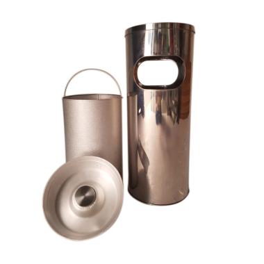JS Tempat Sampah Stainless 2 Lubang Bulat Tutup Asbak Aluminium MANJ