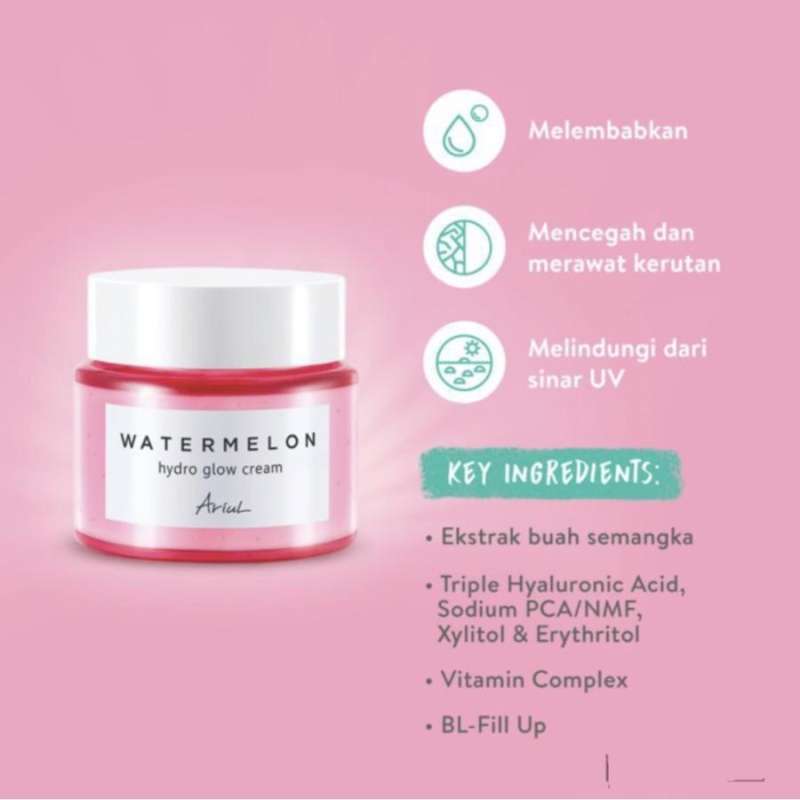 Ariul Watermelon Hydro Glow Cream adalah pelembab wajah yang dirancang untuk memberikan kelembapan maksimal dan mengunci kelembaban kulit wajah.