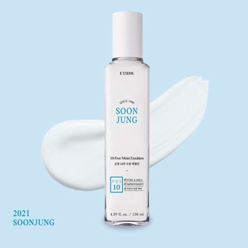 ETUDE HOUSE Soon Jung 10 Free Moist Emulsion adalah lotion yang ringan dan melembapkan kulit sensitif atau bermasalah. Dengan kandungan 93% bahan alami, bebas dari pewangi, pewarna buatan, dan paraben, produk ini mengandung Panthenol dan Madecassoside yang membantu menenangkan kulit yang iritasi.