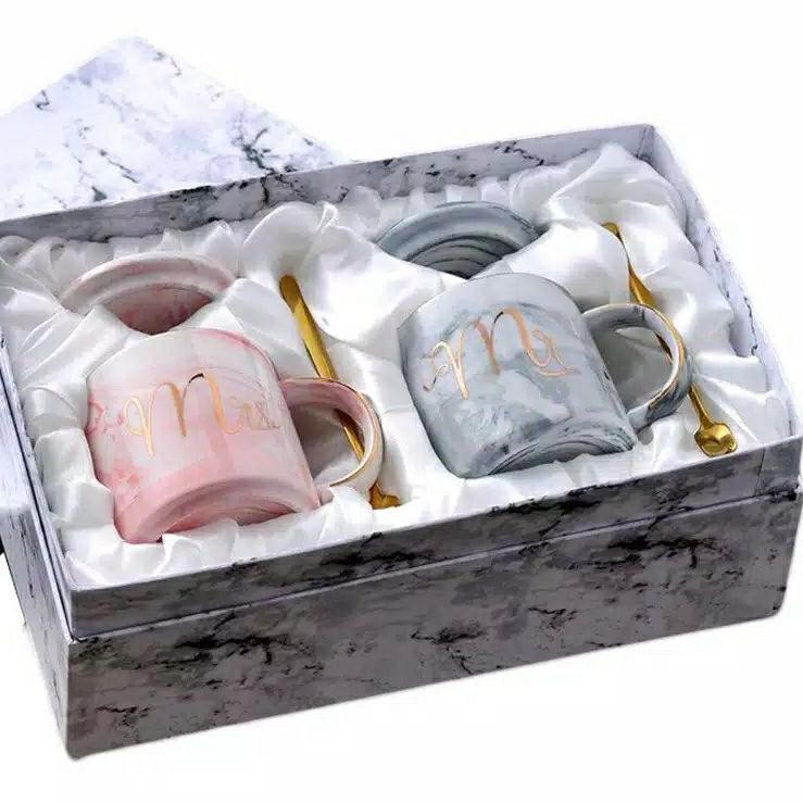 Gelas keramik mug couple sangat cocok digunakan untuk suvenir. Daya tarik pada mug ini adalah bahannnya keramik yang berwarna daripada dengan kaca bening yang polos. Dilengkapi gagang pegangan minimalis, yang membuat visualnya tampak cantik. Selain itu, desain yang digunakan juga cukup bervariasi ada yang simple dan mewah. Dengan saya tarik tersebut maka membuat gelas mug keramik couple ini memiliki harga yang cukup tinggi. Meski begitu, jika dijadikan sebagai suvenir acara penting Anda maka akan menjadi kenangan yang tidak terlupakan oleh tamu Anda. Salah satu set gelas keramik mug couple ini seperti pada gambar yang terdiri dari mug Mr (abu) dan mug Mrs (pink) dengan box yang cantik.