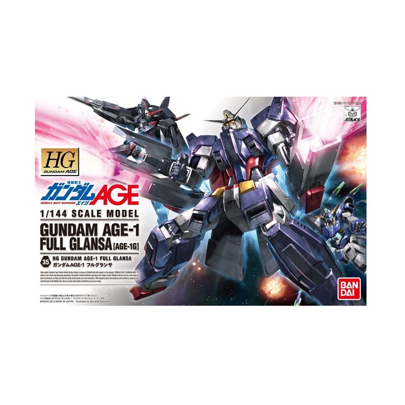 Bandai HG 1/144 Gundam AGE-1 Full-Glansa Model Kit adalah model kit robot Gundam dalam skala 1/144 yang cocok untuk anak usia 15 tahun ke atas. Model kit ini dirancang dengan sistem snap-fit, sehingga tidak memerlukan lem, stiker, atau waterslide decal tambahan.