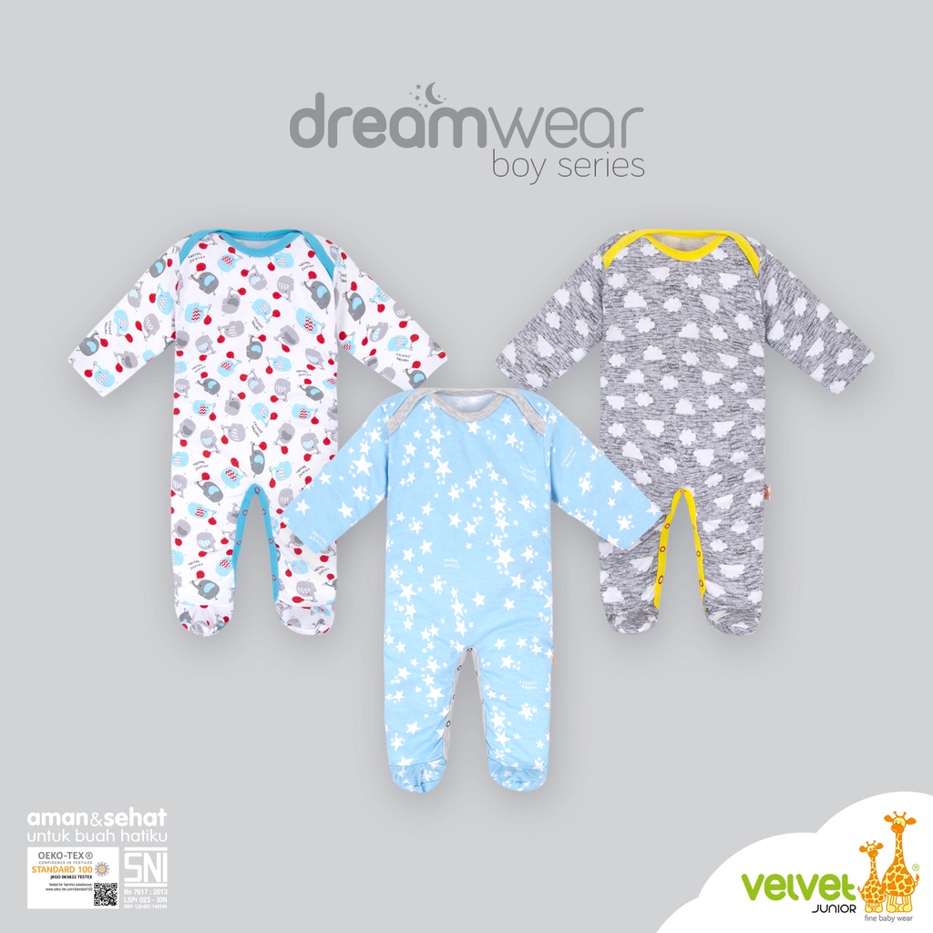 Velvet Junior meluncurkan produk pakaian bayi jumper dengan nama DreamWear. Jumper ini nyaman dikenakan untuk bayi karena bahannya menggunakan katun spesial. Pilihan motifnya juga lucu untuk bayi. Kemasannya juga sangat eksklusif. Jumper tersedia untuk usia 0-12 bulan.