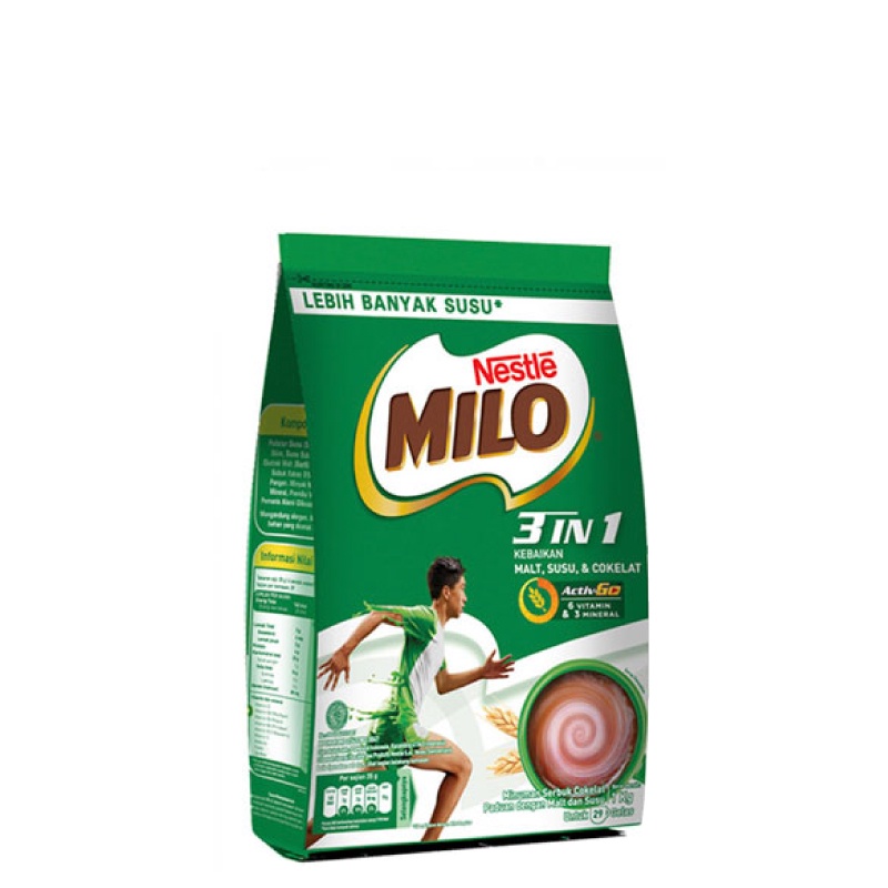 Nikmati kelezatan Milo Activ Go 3 n 1 yang lezat dan disukai oleh berbagai kalangan, terutama anak-anak. Dengan kandungan ekstra malt tinggi, vitamin B12, B2, B3, dan kalsium, minuman coklat ini mendukung pertumbuhan tulang dan memberikan energi yang baik.